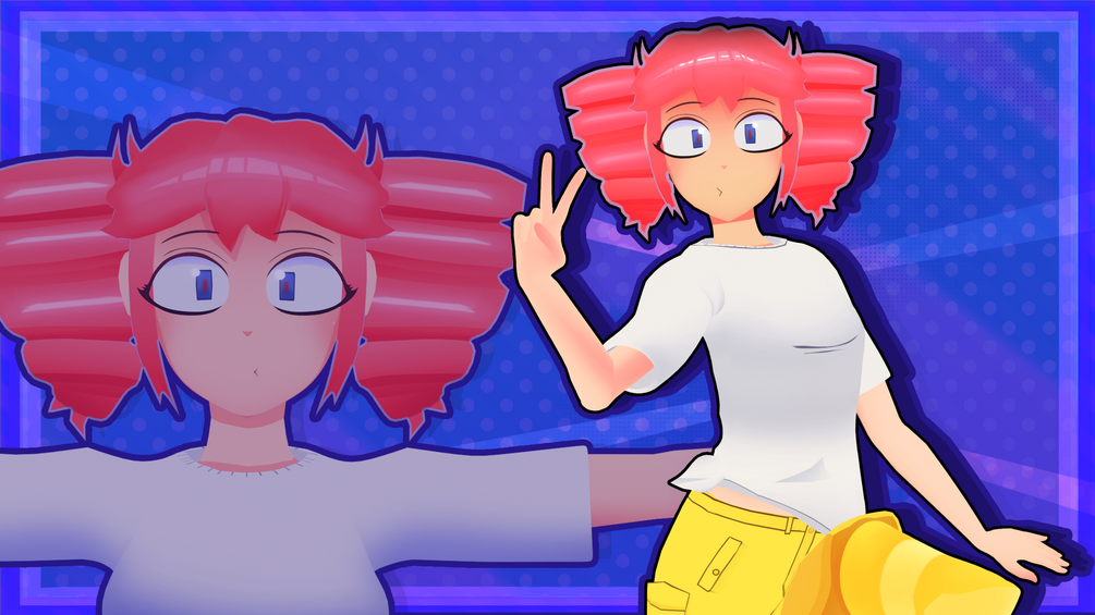 Her 3D Model in .blend format, her original textures in .PSD and .PNG formats, as well as her original 2D Turnaround drawing!