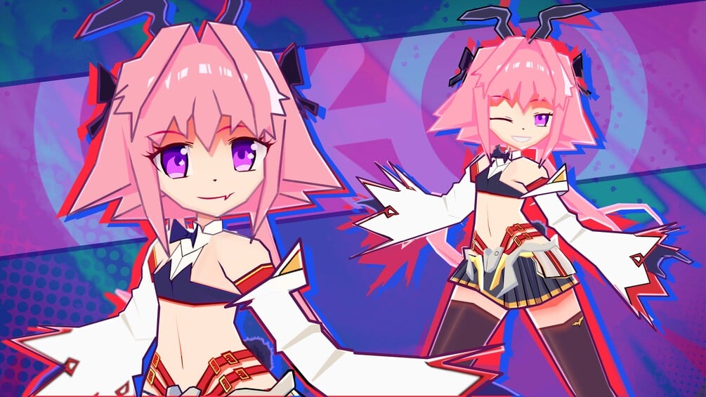 Astolfo is fully rigged including his bunny ears, bows, hair and more and features a face texture with 5 different eye and mouth expressions that can be animated between using his built-in rig controls.